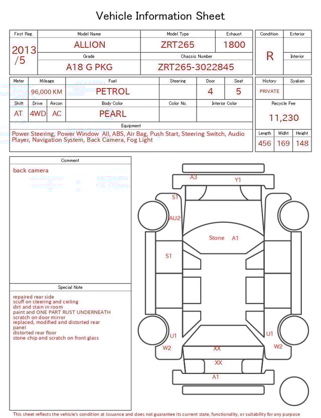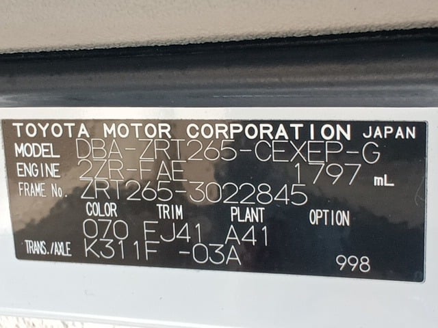 | CHASSIS NO. | ZRT265-3022845 |