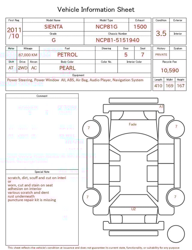 | CHASSIS NO. | NCP81-5151940 |