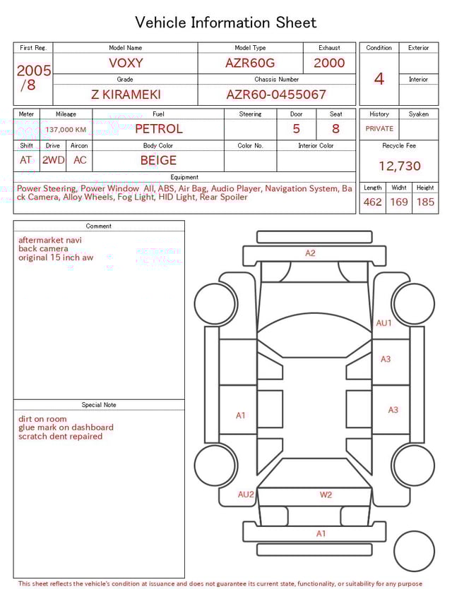 | CHASSIS NO. | AZR60-0455067 |