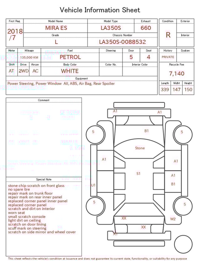 | CHASSIS NO. | LA350S-0088532 |