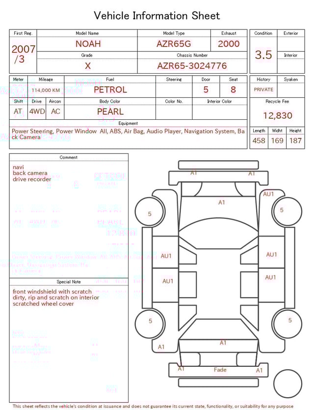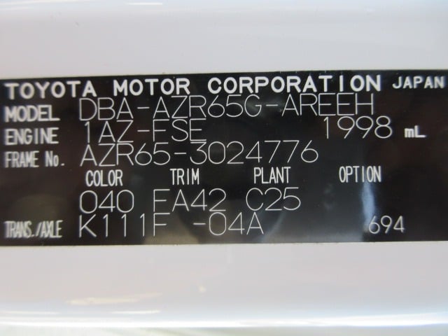 | CHASSIS NO. | AZR65-3024776 |