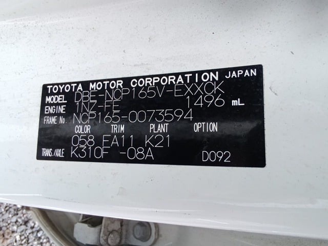| CHASSIS NO. | NCP165-0073594 |