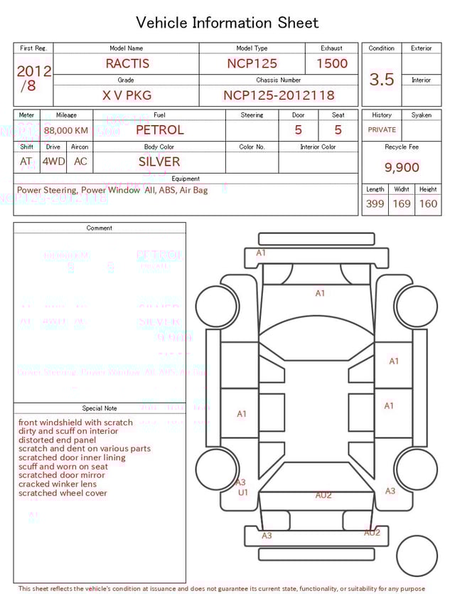 | CHASSIS NO. | NCP125-2012118 |