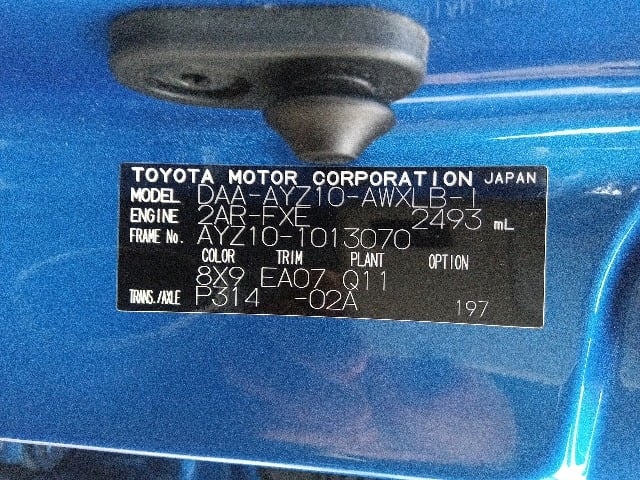 | CHASSIS NO. | AYZ10-1013070 |