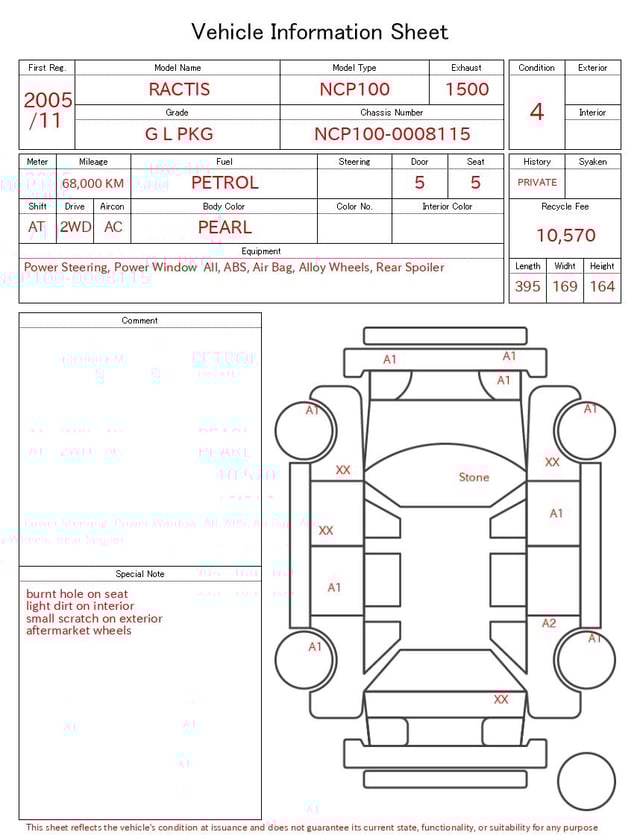 | CHASSIS NO. | NCP100-0008115 |