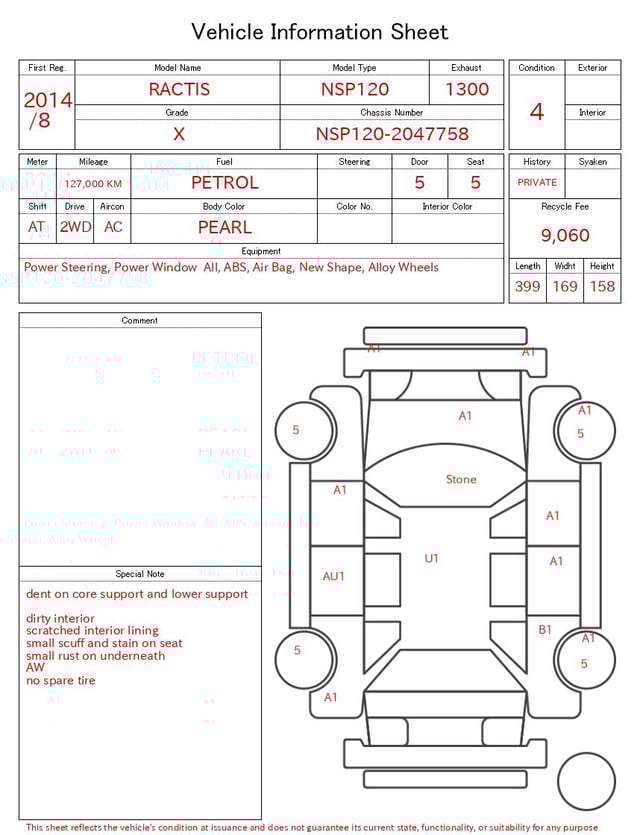 | CHASSIS NO. | NSP120-2047758 |